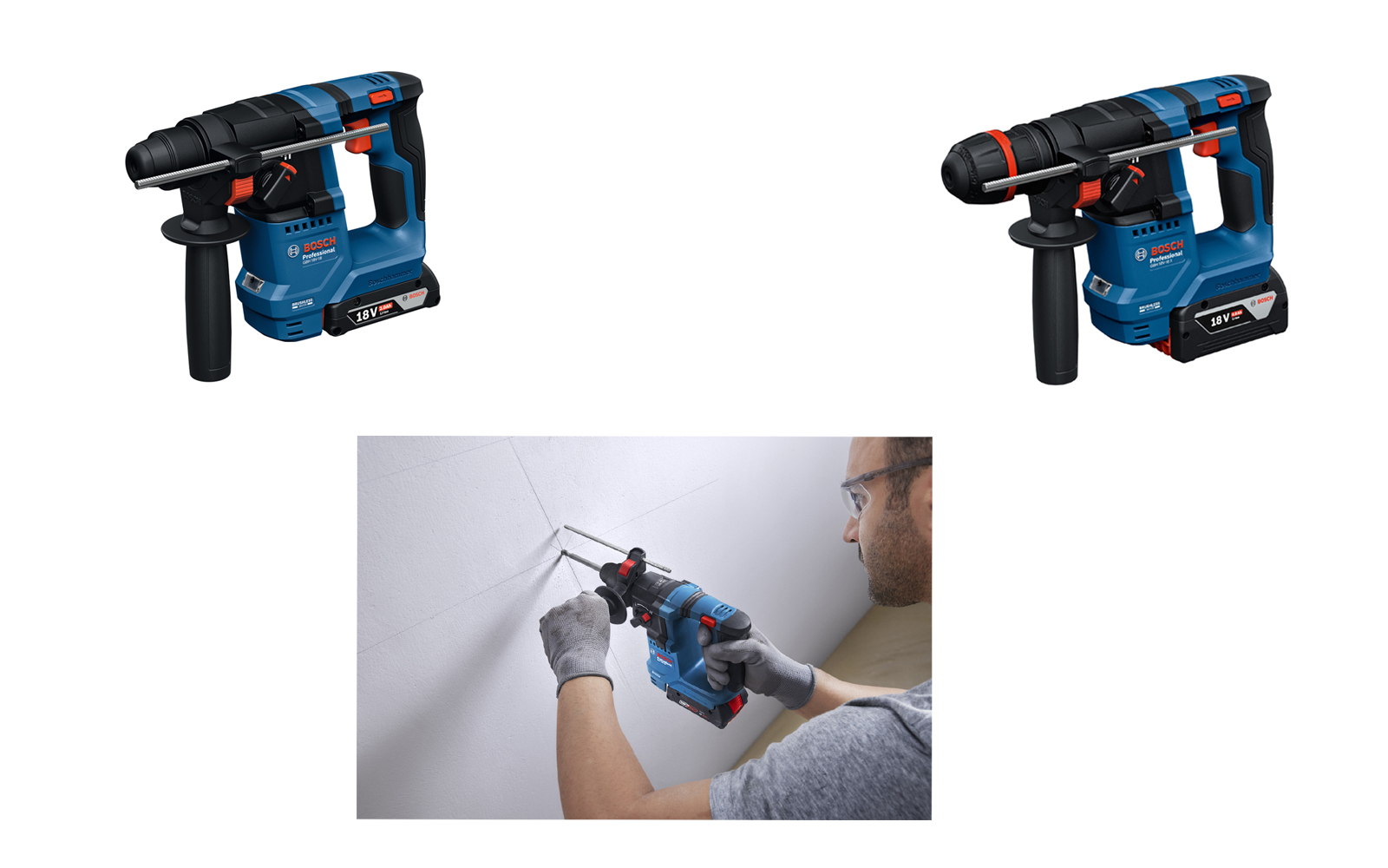 Quant au perforateur GBH 18V-18 X Professional, il est équipé d’un mandrin unique ONE CHUCK qui peut accueillir à la fois des forets SDS-plus et des forets cylindriques/hexagonaux couvrant ainsi un large champ d’applications. Il rend l’outil d’une grande polyvalence.