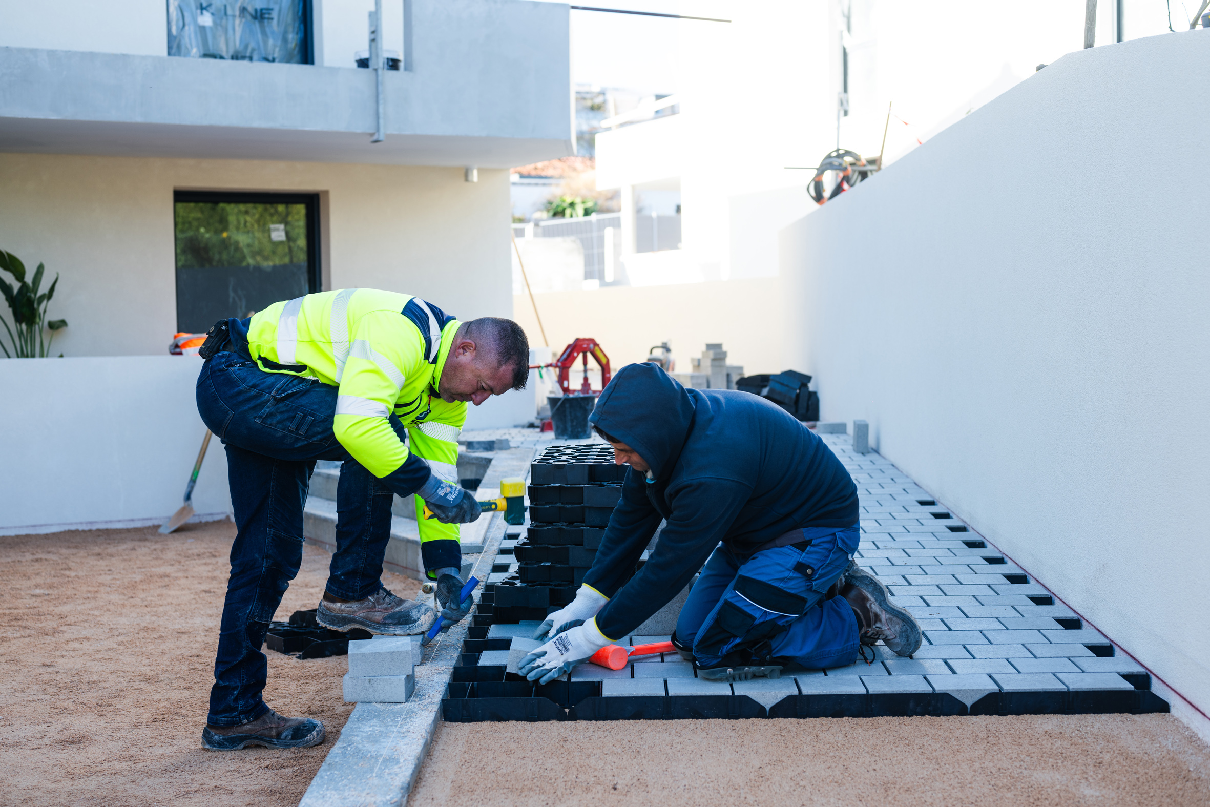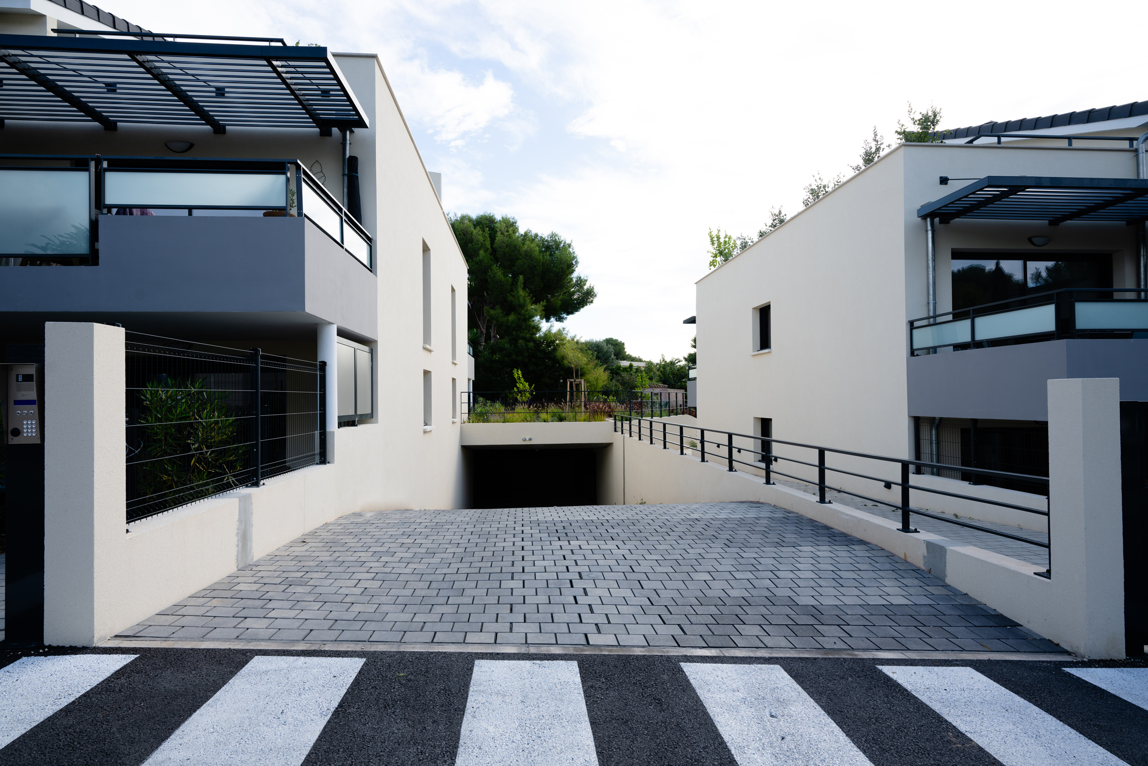 Ainsi, pour le chantier d’une résidence située à Bormes-les-Mimosas, les plaques drainantes carrossables URBANIT® JOUPLAST® pour pavés ont été retenues afin de réaliser les allées, le parking en surface ainsi que la rampe d’accès au garage en sous-sol. Porté par la volonté d’adopter une solution respectueuse de l’environnement, le maître d’ouvrage a fait le choix d’un revêtement capable de préserver la perméabilité des sols. C’est ainsi qu’environ 900 m² de plaques URBANIT® pour 6 pavés en pose décalée ont été mises en œuvre, garantissant à la fois la stabilité et la durabilité de l’ouvrage. Une solution durable et écologique, parfaitement adaptée aux exigences d’un aménagement urbain responsable.