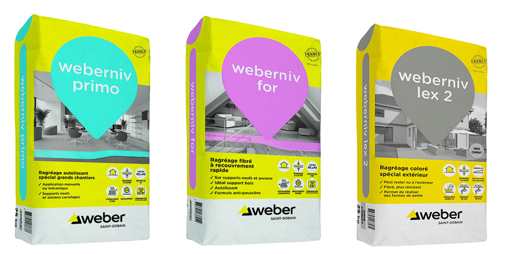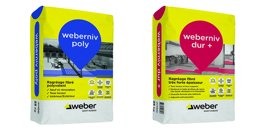 5 produits de la gamme weberniv clairement différenciés pour couvrir l’ensemble des besoins sur chantiers