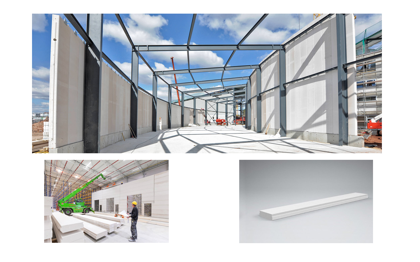 De grandes longueurs, les dalles préfabriquées Hebel offrent une grande flexibilité et permettent de construire des bâtiments industriels sur mesure, en un temps record, jusqu’a 200 m2/jour, et de manière économique. L’assemblage sur site s’effectue rapidement à l’aide d’une grue, offrant une pose mécanisée qui facilite le travail des opérateurs. Ce système constructif assure un grand rendement sur les projets d’envergure.