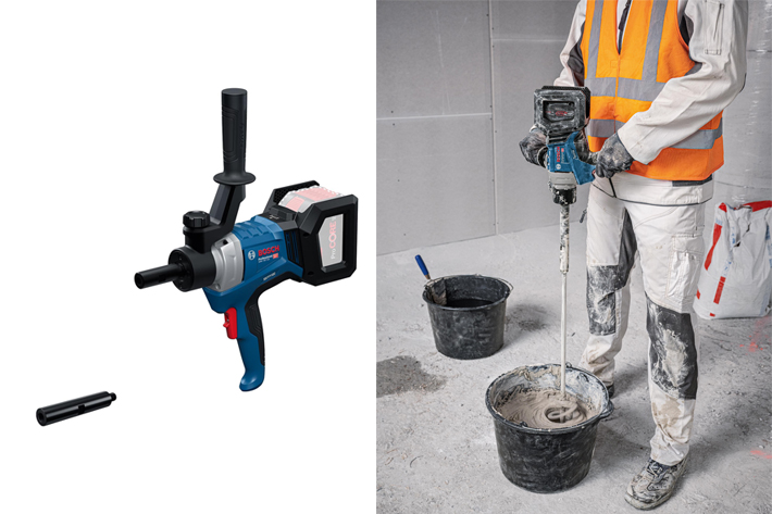 Le nouveau malaxeur sans-fil GRW 18V-120 Bosch Professional est un choix judicieux pour les professionnels du bâtiment qui doivent réaliser des travaux d’enduit, de peinture, de jointoiement, de pose de carrelage ou de faïence…