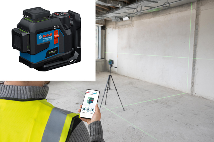 Pour un travail plus rapide et précis, le GLL 12V-100-33 CG Professional se connecte à un Smartphone en actionnant le bouton Bluetooth. À partir de l’application Levelling Remote, l’utilisateur peut contrôler à distance les 3 lignes laser sur 360° et activer le mode économie d’énergie. La connectivité simplifie les activités sur les chantiers notamment lorsque l’artisan travaille seul ou sur des sites difficiles d’accès ou éloignés.