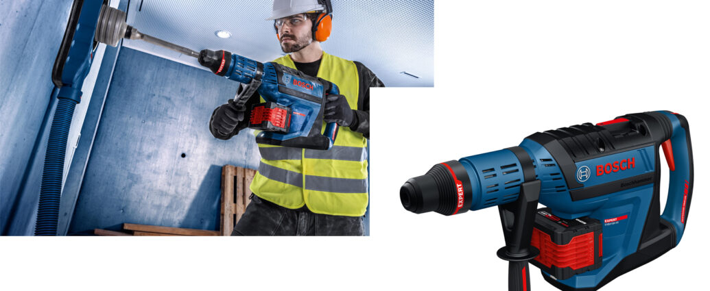 Polyvalent et puissant, le nouveau perforateur sans-fil SDS max EXPERT EXBH18V-45 Bosch délivre une force de frappe élevée de 12,5 J permettant de couvrir les applications les plus exigeantes dans le béton, la brique, la maçonnerie, la pierre… Son moteur BITURBO sans charbon Brushless haute performance associé à sa transmission optimisée permettent d’exploiter le plein potentiel des nouvelles batteries EXPERT. Il assure un travail plus efficace, avec une vitesse de perçage jusqu’à 2x plus élevée qu’avec le GBH 18V-36 C Professional*.