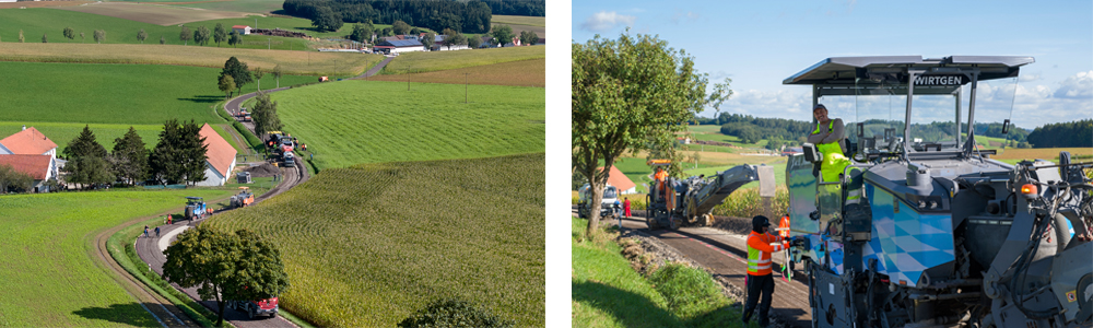 À Markt Indersdorf, à environ 50 km au nord de Munich, une technologie moderne est mise en œuvre dans le cadre d’une démarche durable. Là, une nouvelle couche portante a été réalisée en à peine trois jours avec un recycleur à froid de la série CR – la technologie mise en œuvre a permis de raccourcir de 6 à 8 semaines la durée du chantier, mais aussi de réduire considérablement la facture pour les contribuables.